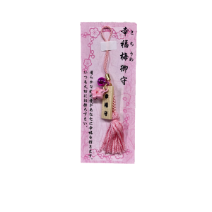 境内に咲く梅を表したお守り。花が咲くように願い事が叶いますように。
